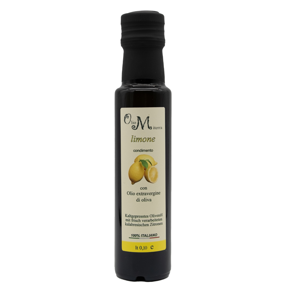Olio Miterra Zitronen-Olivenöl wird aus erlesenen Oliven und frisch gepressten Zitronen gewonnen – Leicht, frisch und harmonisch.